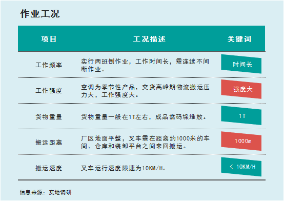 南昌基地生產(chǎn)產(chǎn)線密集,每個(gè)環(huán)節(jié)環(huán)環(huán)相扣,需要叉車連續(xù)不間斷的來(lái)回搬運(yùn),整體工況良好,具體如下: